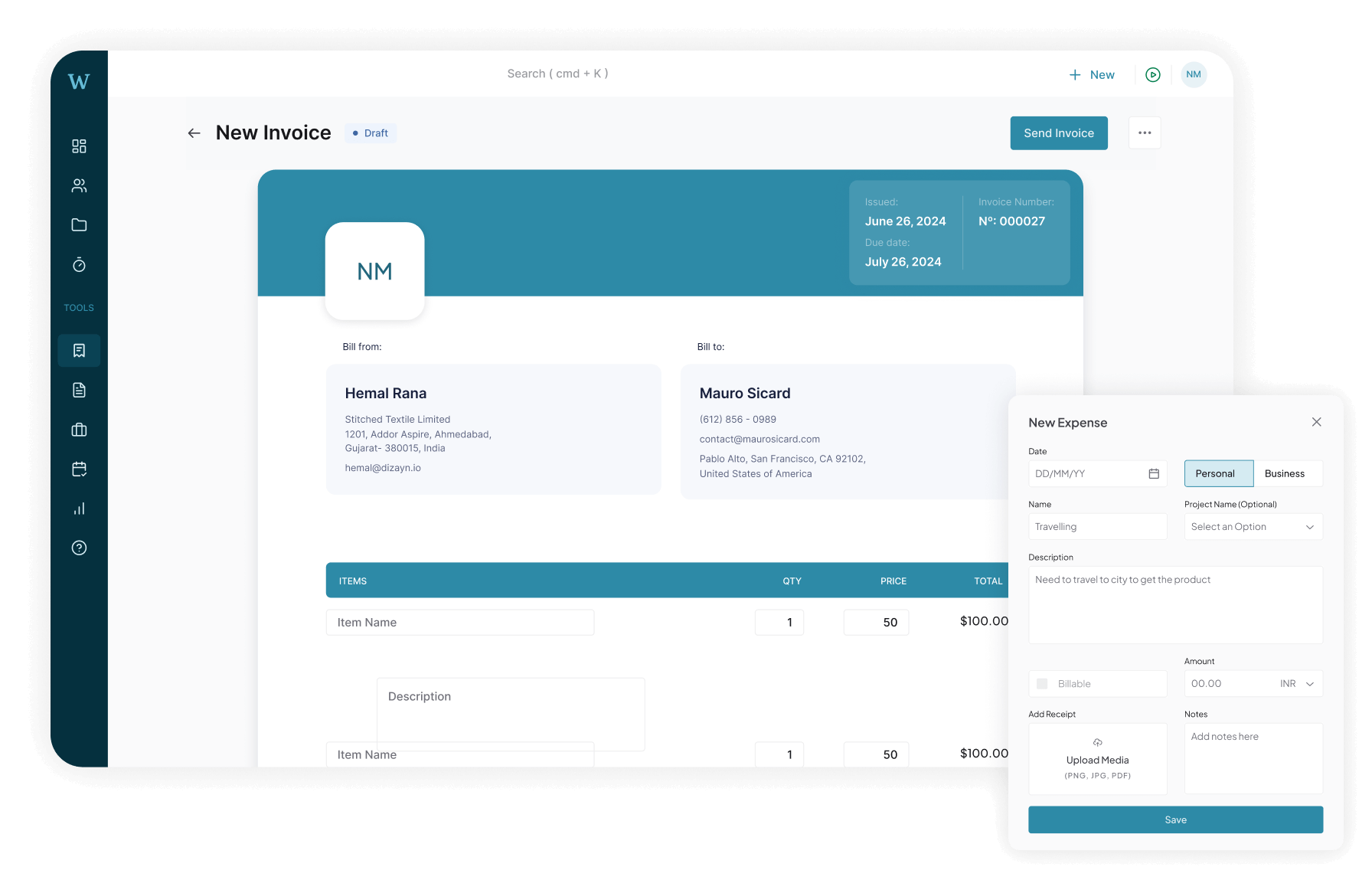 Integrate your business expenses into the invoice with a simple, one-click solution! Streamline your financial management process, saving you time and enhancing accuracy.