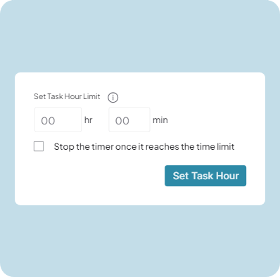 Set your own task duration limits with flexibility. Receive email notifications to extend or halt the timer upon completing tasks within your chosen timeframe.
